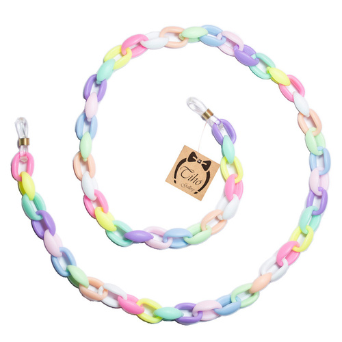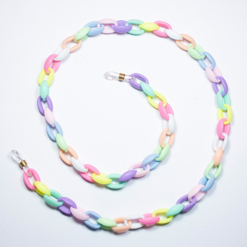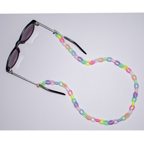 بند عینک مدل پاستیلی از جنس پلاستیک بسیار با کیفیت بالا و به شکل زنجیر در رنگ های متنوع و مات ساخته شده است ، این محصول نفیس با طولی استاندارد معادل حداقل 60 سانتی متر تقدیم شما می گردد.
